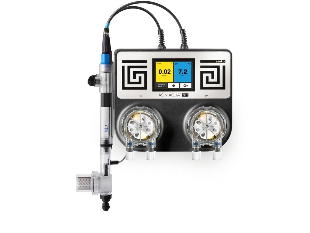 Asin Aqua Net Dose je určený na úpravu vody v súkromných bazénoch až do objemu 250 m3. Automaticky reguluje pH a dávkuje zvolené množstvo dezinfekcie, počas doby prevádzky bazénovej filtrácie (hodinová dávka dezinfekcie). Meranie pH prebieha za pomoci pH sondy. Dezinfekcia sa dávkuje podľa nastavenia chodu filtrácie.
