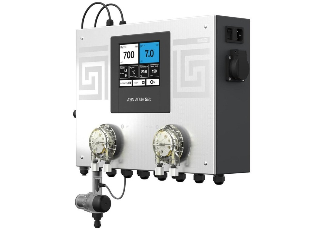 Dávkovač ASIN Aqua SALT eOX 50 je moderné zariadenie, ktoré využíva elektro-oxidáciu (EOx) na úpravu bazénovej vody.