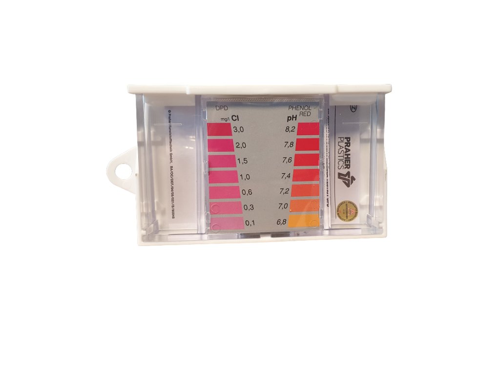 Bazénový tester na meranie hodnôt pH a chlóru v bazénovej vode za pomoci tabliet. Meranie sa odporúča vykonávať 1x týždenne. Voda na testovanie by mala byť nabratá 20-30cm pod hladinou a 25-30 cm od okraja bazénu.