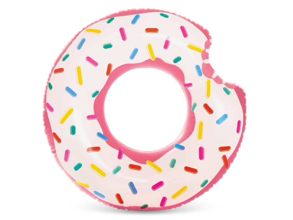 Veľké nafukovacie koleso pre deti od 9 rokov s motívom odhryznutého donutu s dúhovou posýpkou.